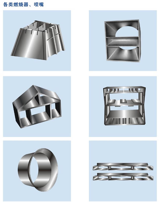 新型耐热材料NR14、NR12、NR9、NR7等广泛应用于火电厂锅炉喷嘴、予燃室、门孔等;冶金炉门、炉筐、管夹、炉底辊;热处理炉料筐、炉罐等一切耐热材料。 |